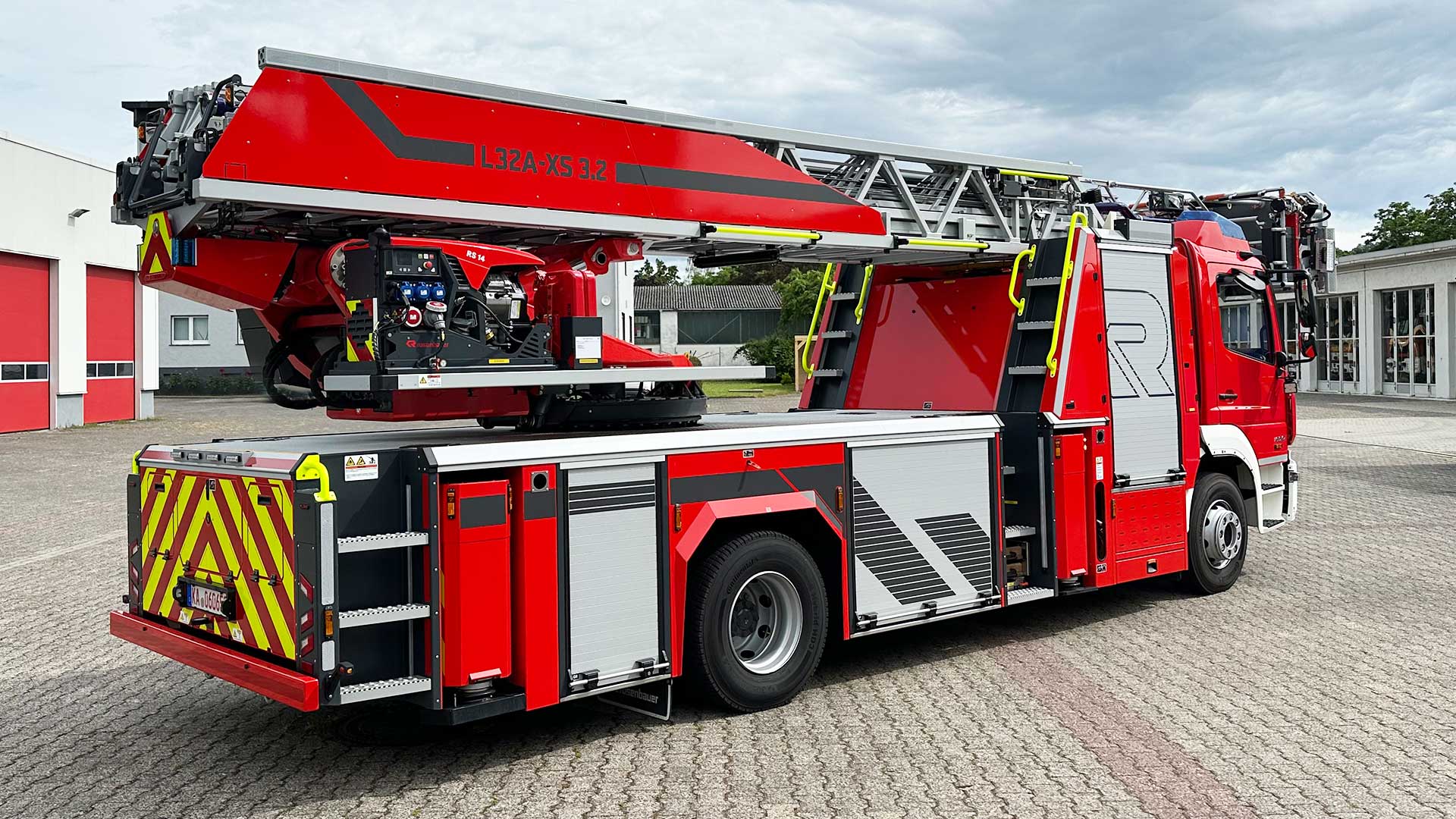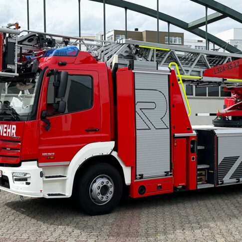 Auf der Fire Rescue Mittelrhein 2024 könnt Ihr im Außenbereich das aktuelle Vorführfahrzeug auf Basis des Mercedes Atego live erleben. Das Fahrzeug wird von Rosenbauer unter der Typenbezeichnung L32A – XS 3.2 angeboten und bietet viele innovative Detaillösungen.