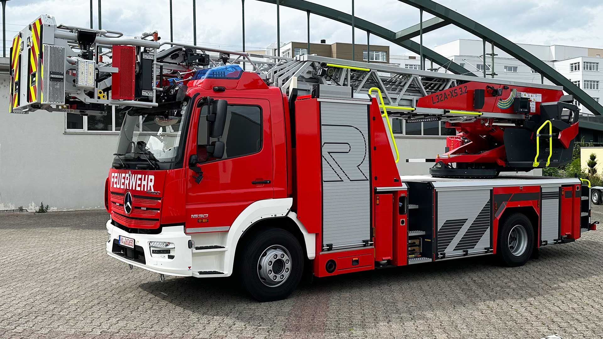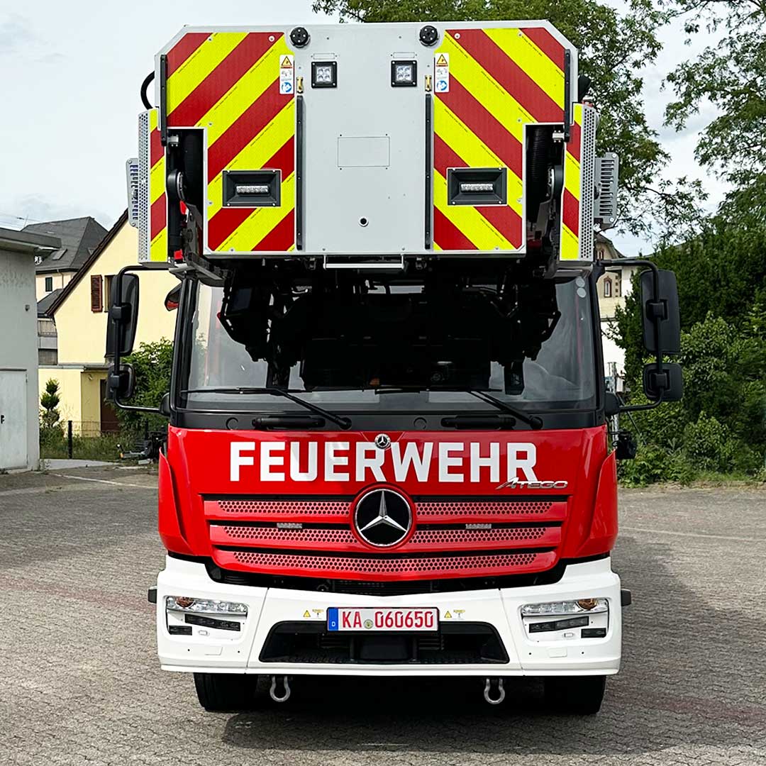 Auf der Fire Rescue Mittelrhein 2024 könnt Ihr im Außenbereich das aktuelle Vorführfahrzeug auf Basis des Mercedes Atego live erleben. Das Fahrzeug wird von Rosenbauer unter der Typenbezeichnung L32A – XS 3.2 angeboten und bietet viele innovative Detaillösungen.